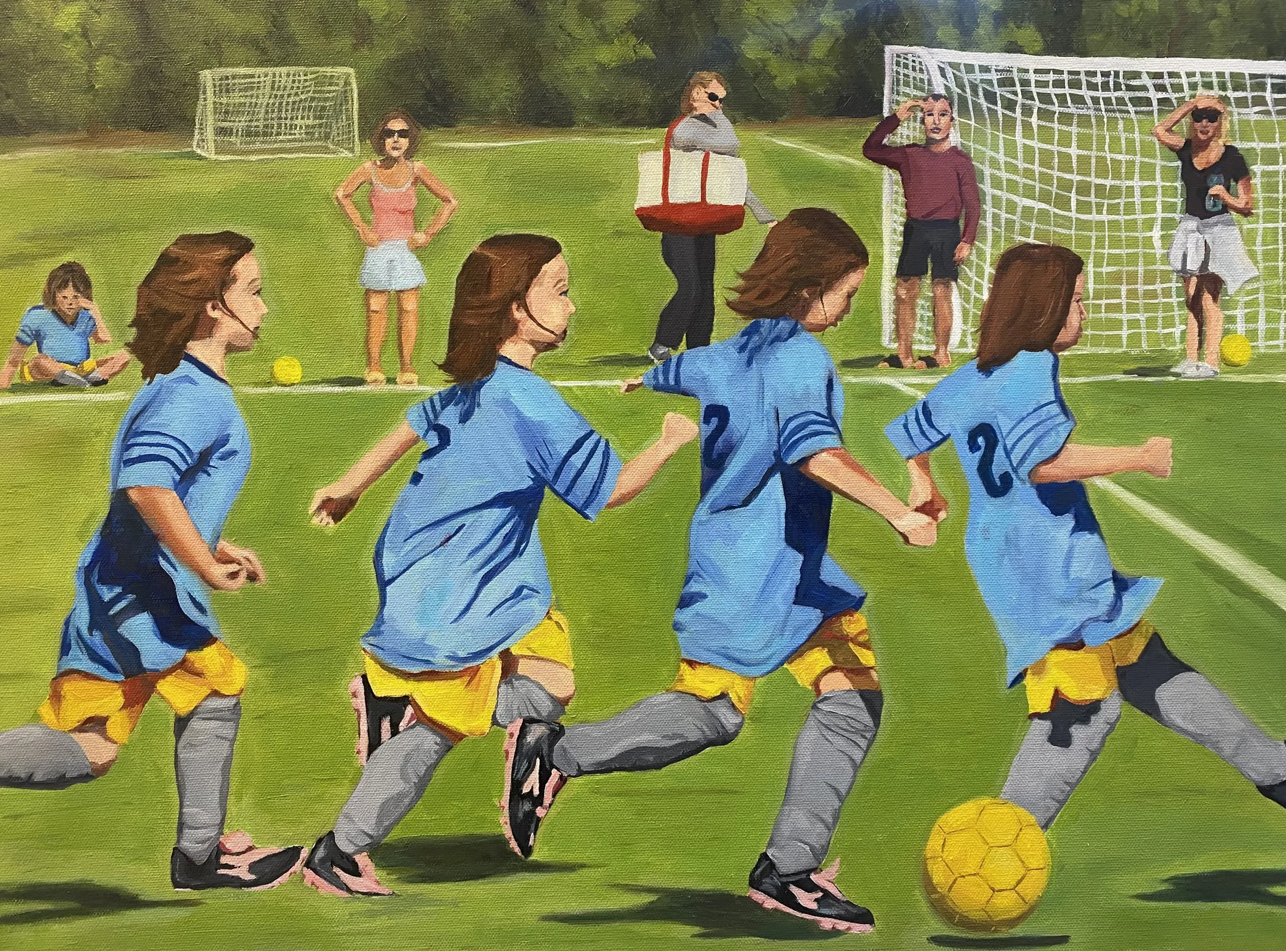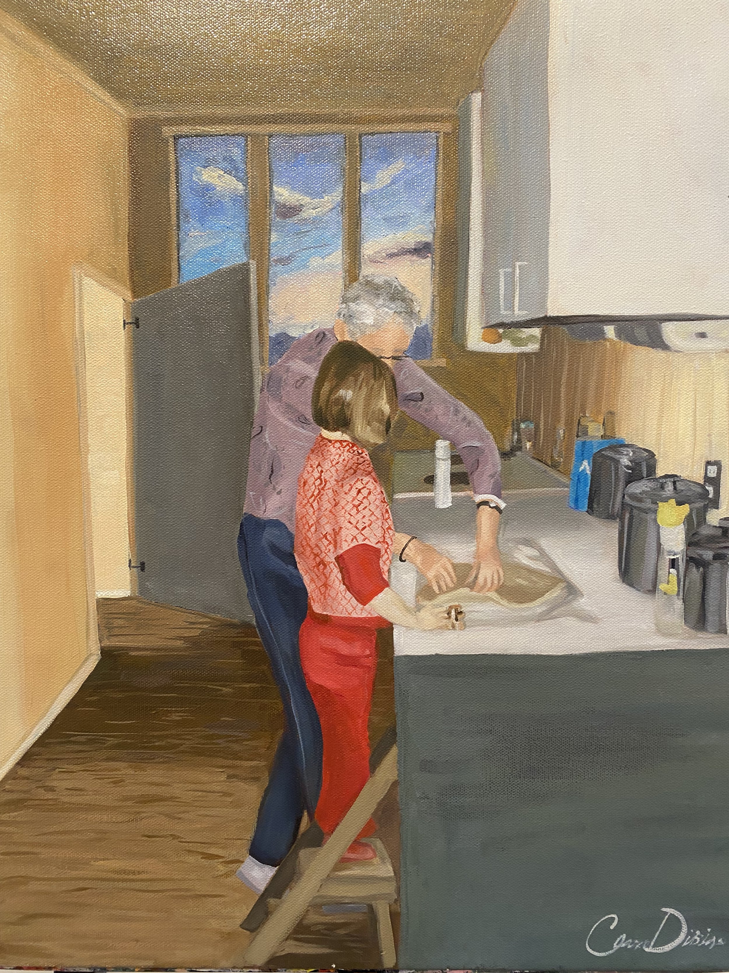 My oil paintings explore the memory of my childhood. Growing up, my only worries were what to eat and what to play. I look back at that life with innocence, making the world feel light and fun. Painting childhood moments allows me to reconnect with that happiness. Painting my memories puts me in a worry-free state, where choices feel impermanent, just as they did when I was young. I can paint over marks easily, just as my memories come and go easily. By painting myself, I capture moments of pure joy and invite others to reflect on their childhood bliss. Even those with difficult upbringings yearn for contentment and innocence. Through my work, I want to evoke nostalgia and remind viewers of a time when the world felt full of wonder.